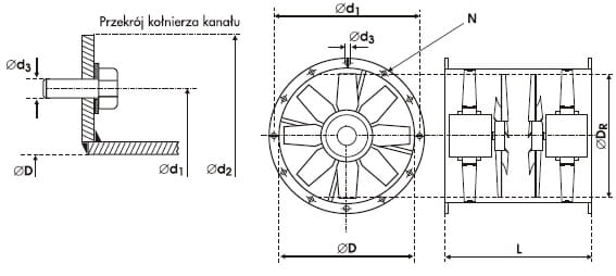 Wentylator kanałowy przeciwbieżny Turbo Deltafan 315/KAN/8-8/35/400/H/TU